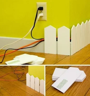 Créer des motifs avec les fils. Deux solutions soffrent à vous. Des range-câbles ou organisateurs de câbles permettent de masquer les fils comme les multiprises.